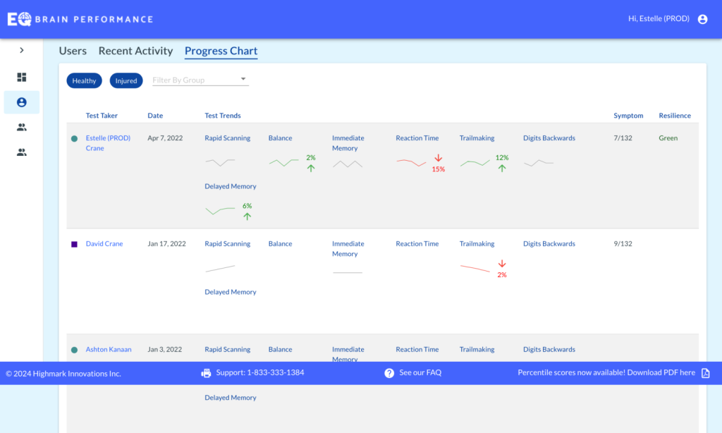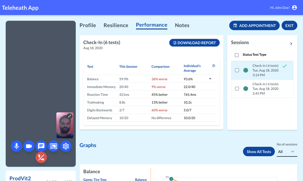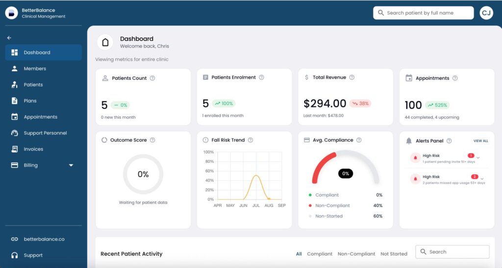 Better Balance Therapy - Dashboard for the Clinicians to monitor their patients